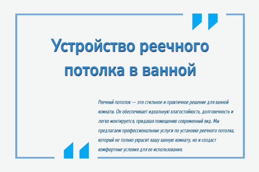 Устройство реечного потолка — это надежное и современное решение для вашей ванной комнаты. Доверьте эту задачу профессионалам, и результат вас приятно удивит!